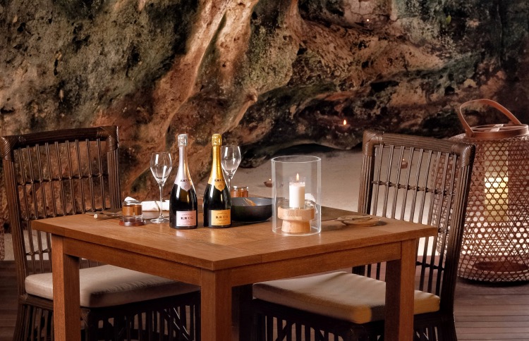置身满天繁星和浩瀚大海之间,在坐落于岩石上的露天凉亭享用新鲜捕捞的海鲜。迷人的烛光和精选的葡萄酒增添浪漫气息。