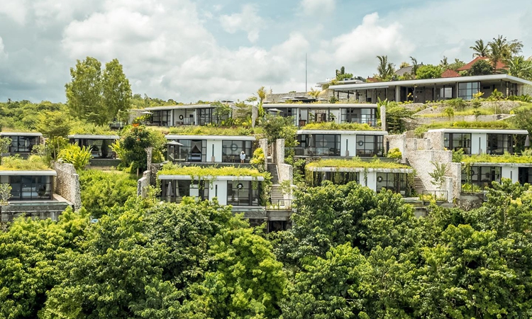 MĀUA Nusa Penida ,2022年新开业,酒店提名“2023 World Luxury Hotel Awards” (世界豪华酒店奖)。由一群热爱巴厘岛(巴厘岛的风景、文化和人民)的法国人建造,由法国建筑师、勒·柯布西耶 (Le Corbusier) 专家帕斯卡·莫里 (Pascal Mory) 设计,将混凝土现代主义建筑、原始石灰岩露台以及标志性景观露台和花园中的努沙佩尼达植物群融为一体,与自然融为一体,专注于环保,旨在减少碳足迹。