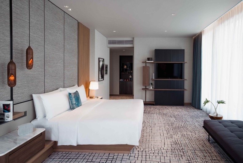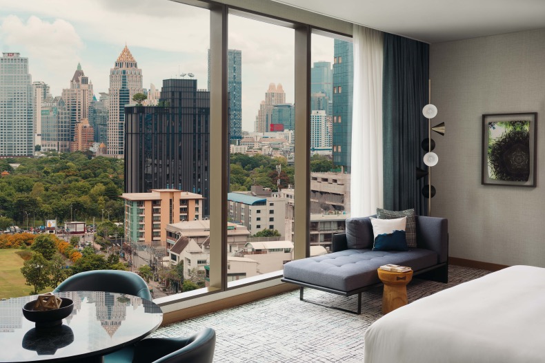 曼谷金普顿玫兰酒店所有的362间客房(包括131间服务式公寓)皆采用有机材料和传统泰国工艺打造,令充满现代感、线条流畅的酒店建筑脱颖而出。卧室和浴室装修精美,现代物质享受一应俱全,层次丰富的空间营造出蚕茧般舒适的豪华氛围,吸引了独具慧眼、注重设计感的宾客入住,久久不愿离去。