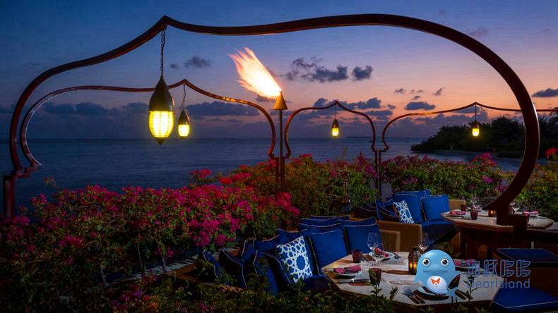 餐厅的名字源于一位将伊斯兰教传入马尔代夫的著名历史学者。您可以在此品尝别具风味的阿拉伯美食,然后移步酒吧享受咖啡和水烟带来的惬意体验。餐厅的水烟馆面朝大海,配有帷幕沙发和华丽的灯具——非常适合享用餐前酒或土耳其咖啡和水烟管。