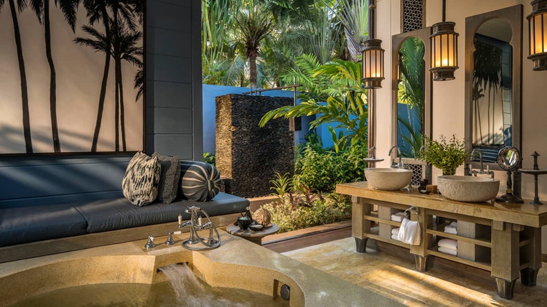 22 米长的私人泳池,池畔配有巨大木质露台 — 无论是私人家庭烧烤,还是举办婚前池畔单身派对或庆祝单身女郎之夜,这里都是您的理想之选。三卧室花园别墅空间巨大,功能多样,是多代家庭度假和好友相聚的绝佳场所。别墅室内外休息空间宽敞,让同行的每个人都有足够的空间,享受自己期待的静处和欢笑。这些美丽的静养休憩之所坐落在一座小丘之上,掩映在度假酒店的热带花园之中,让您能尽享葱郁的景色和隐秘。两个主卧各配有一个土耳其式水磨石浸泡浴缸及室外下沉式沐浴间,另有一个配有浴室的儿童卧室,为人数更多的团体提供更大空间和灵活性。
