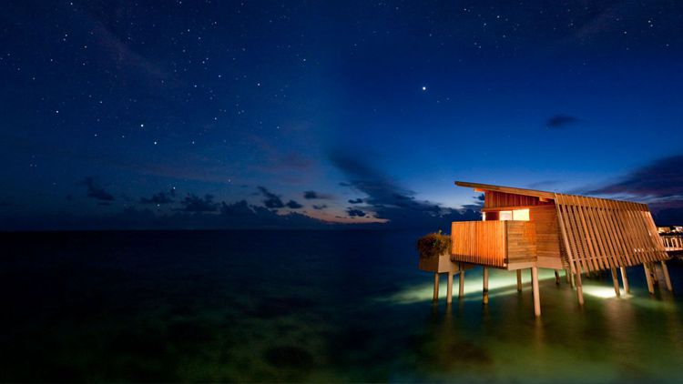 水上别墅可提供 180 度的不间断地平线景观和令人屏息的的马尔代夫夕阳景观,并且每位客人均可独自使用下面充满珊瑚的水域。