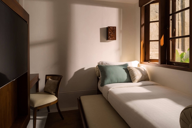 园景双卧室别墅坐落在馨香曼妙的巴厘风格花园中,面积达 470 平方米,配有宽敞的卧室两间,分别位于露天起居用餐亭楼的两边。茅草屋顶之下是现代巴厘岛风格的装饰,可直接通往有墙隔断的私人花园中 17 平方米的泳池。配特大床的主卧和两张单人床的次卧都有移门,直接连接泳池边的日光休闲区。卧室中配有席梦思品牌为四季酒店专门定制的睡床,您还可挑选床垫上层的垫褥。此外,房中还配有步入式衣柜,带深浸式浴缸和双台盆的浴室,并且室内外均配有淋浴。宽敞的起居区可容 6 人落座,在别墅内轻松享受美妙餐饮体验。别墅还配有小厨房、餐储室和娱乐系统。