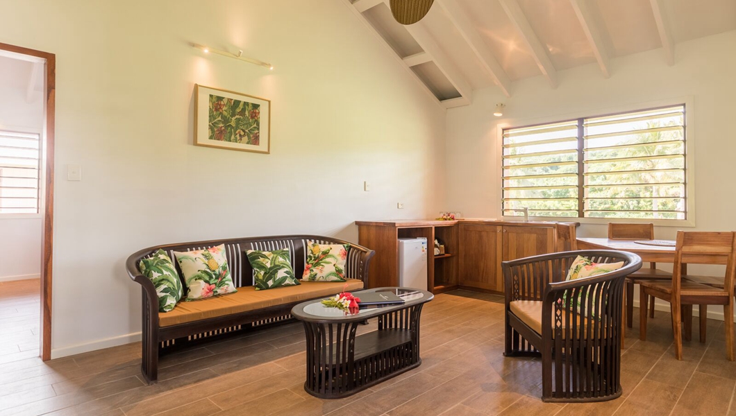在酒店2018年全新对外开放的两卧室家庭别墅中放松身心。房间配备有当地传统木材家具,带小厨房和桌子的休息区,种植园风格的别墅为住客提供放松身心的完美度假。