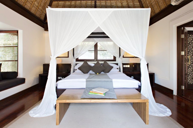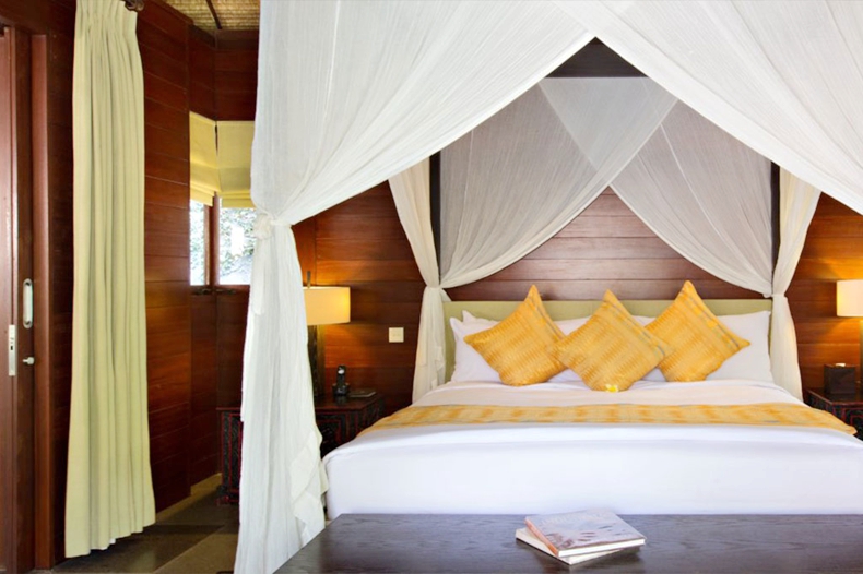 豪华别墅是酒店新建的别墅,于2008年正式完工。别墅依然区分了生活起居空间与卧室。别墅内所有的线条与室内色彩的运用都是摩登又现代。 卧室空间小巧迷人,处处都以暖黄灯光加以点缀,大床上布置了雪白的纺纱,而巴厘岛传统的藤木屋顶则更是体现出特别的巴厘岛情调。 山石堆砌、郁林环绕的淋浴区充分和大自然融合在一起,让宾客感受原始大自然的美景意境。