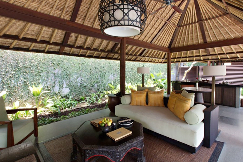 别墅的格局是客厅与卧室分离开来,露天客厅让客人与周边环境完美融合,更一步贴近大自然;在用餐区域享用美味时,甚至可以听到丛林里清脆的蛙鸣,好闻的稻花香将陪伴你度过美妙的用餐时光。在室内,无论是编藤屋顶、木制品还是石雕或者比划,都体现着浓浓的巴厘岛风情。酒店不接受16岁以下的小童;房间不提供加床服务。