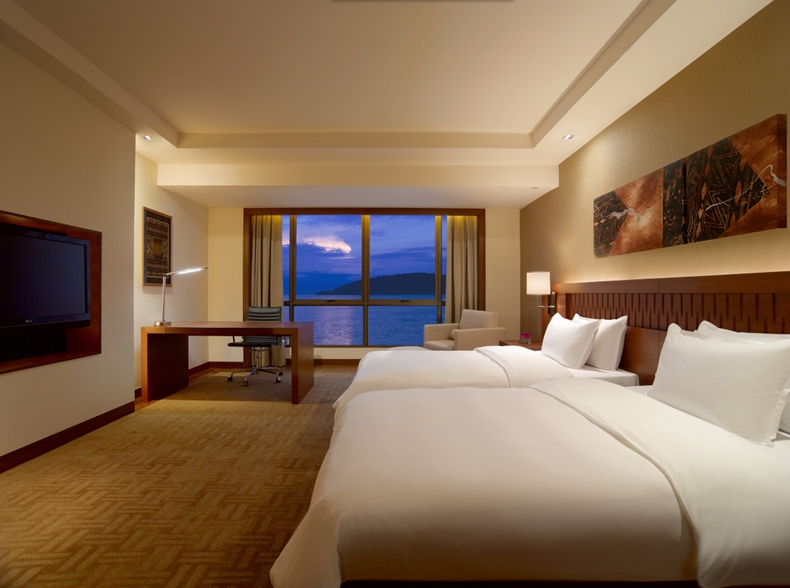 通过房间窗户,直面迎来的是壮丽的南中国海和东姑拉曼海洋公园的景色,让人惊叹无比。房间处布置着婆罗洲艺术品的内饰,典雅的装修特色让你感受马来西亚文化风情。