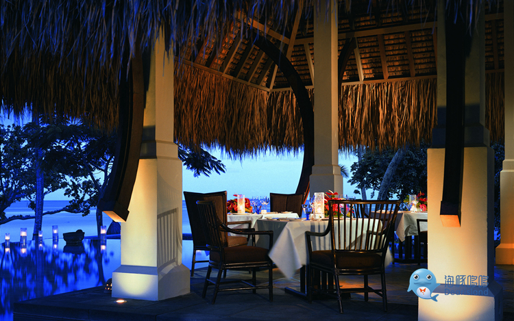 仅提供晚餐,主要是毛里求斯当地及日式料理(其中每周一三五提供毛里求斯当地的套餐,二四为日本料理(半餐需补餐费),由于位子有限,需提前预订,可容纳6-12位。此外酒店还有1个酒吧,以上餐厅和酒吧均有用海景,均为单点和套餐。