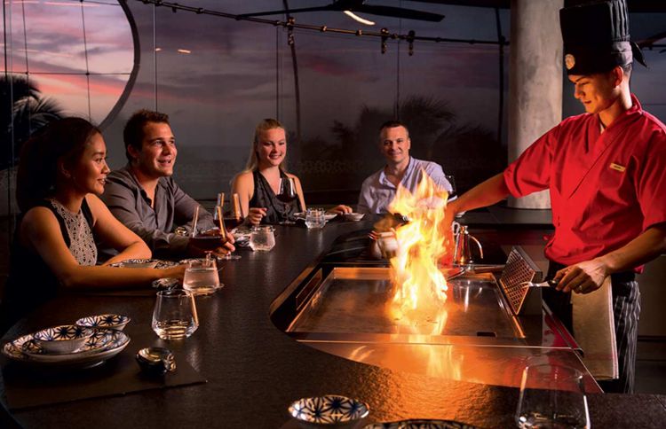Tavaru塔楼餐厅推出全新铁板烧概念,在美食的熏陶下,Velaa私人岛的怡人风景和印度洋的湛蓝海水显得更为迷人。