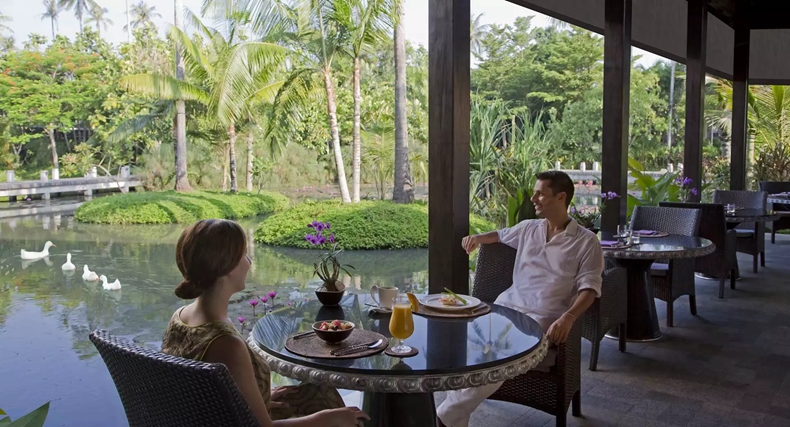清晨先享用融合世界风味的自助早餐,开启美好的一天。午餐和晚餐可在位于泻湖一角的餐厅享用香辣的印度和泰式风味佳肴。在露台上一边悠闲享用美食,一边欣赏曼妙旖旎的自然风光。享用美食的同时,还可啜饮The Tasting Room 供应的一系列高档葡萄酒。