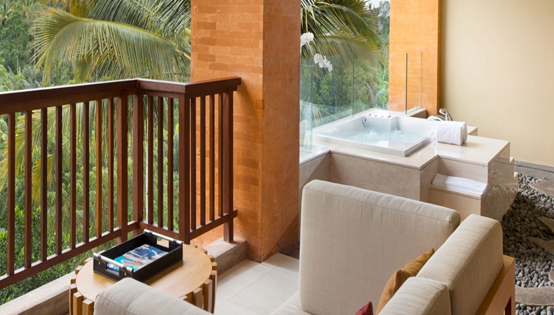 坐落于阿勇河上游,俯瞰乌布迷人的山谷景观。2015年10月开业,总共有149间房。五星级酒店,总占地面积11公顷。距离国际机场57公里(约1小时40分钟),距离乌布中心约20公里(开车半小时左右)。