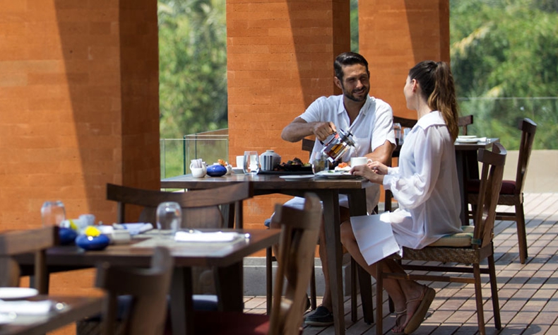 位于建筑顶楼,可以俯瞰度假村广阔的无边泳池和花园。提供一系列诱人的国际美食,包括印尼,亚洲和欧洲菜肴。