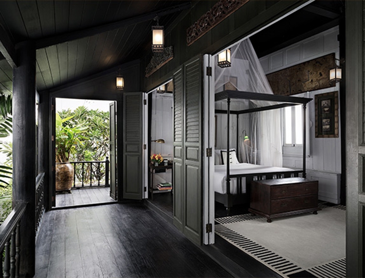 最有故事的Connie小屋是最抢手的,整栋小楼是从古都大城(Ayutthaya)用船移植至此,小屋原主人是古董收藏家Connie Maryskau及其密友兼丝绸大亨Jim Thompson。如今,内部软装完全遵循Connie最初的布置法则,四柱床、帐幔、老相片、老电扇、木质阳台都一如往昔。