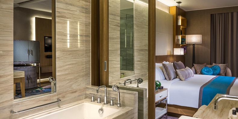 可选宽敞的开放式格局或独立起居室户型。设有私人阳台,城市或海景一览无余。所有入住客人均可使用洲际俱乐部服务,可优先办理入住和退房服务,享受单定早餐,下午茶服务以及夜晚鸡尾酒。