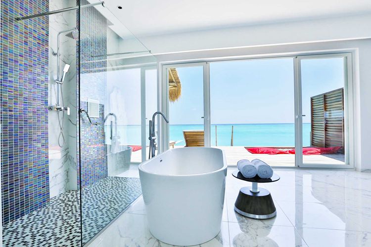 Water Villa 水上别墅 数量:25间 面积:128平米 最多入住 2 Adults + 1 infant +1 Child OR 3 Adults