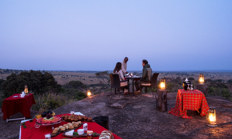 山林小屋或丛林中设有多个特色餐饮场所,美味的餐点包括各种开胃菜,主菜,甜点和饮品。下午时分酒店也供应下午茶,并在酒店特别位置上享用日落鸡尾酒,远眺马赛马拉区域的宁静跟野性。