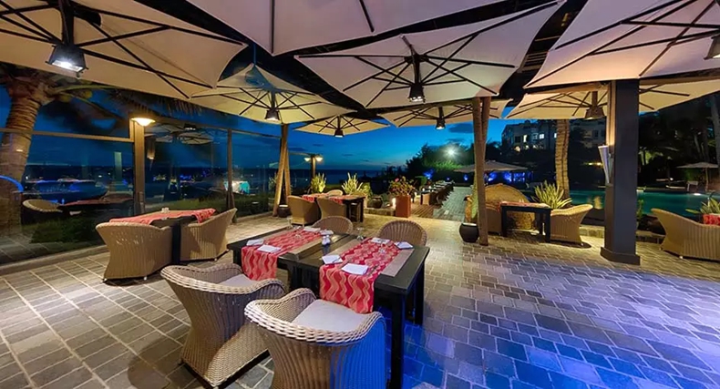 品尝当地水域捕捞的海鲜,根据传统越南食谱烹制或搭配各种蘸酱烤制。 菜单上还包括优质进口肉类,以及餐厅市场摊位上陈列的各种新鲜蔬菜。 最后还可享用法式蛋糕或甜点,欣赏月光下的大海。