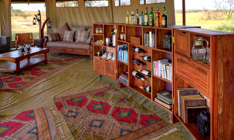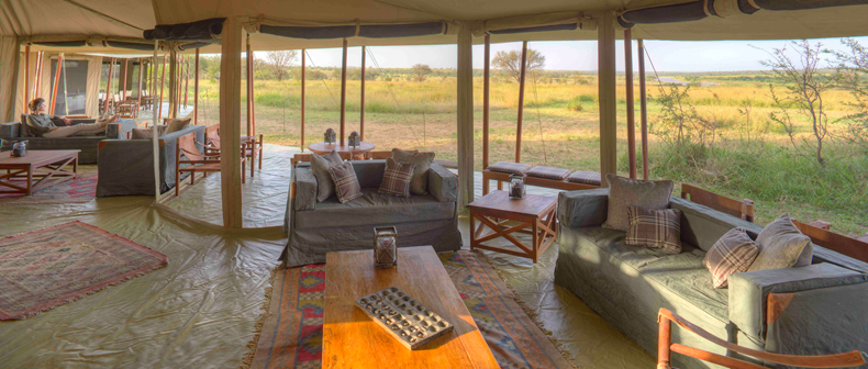 酒店所有帐篷的风格和氛围都相呼应,露台可欣赏到广阔的塞伦盖蒂平原的全景。下午,您可以在餐厅的扶手椅上放松身心,或在周围树木的树荫下舒适地观看游猎和动物。当黑夜降临时,酒店会在餐厅帐篷里或在酒店附近的小空地上给您安排晚餐。伴随着闪闪发亮的星空、风声扫过灌木和丛林沙沙作响、动物在营地附近觅食的声音,在酒店为你准备的柔软的床榻安眠入睡。