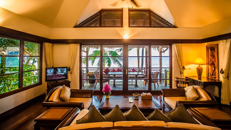 给自己一个放松的时空,别墅用华丽的棉和竹子的内饰营造出清新而高雅的氛围,可以看到泰国湾的壮丽景色,更可以看到别致的海景和山景别墅。以上三种房型,房间内有一张大床,外加一张供小孩子使用的沙发床(图靠窗部分),门外是一个小阳台,面朝大海,喝一杯可好!每一间别墅都是独栋别墅,全海景,绝对私密。