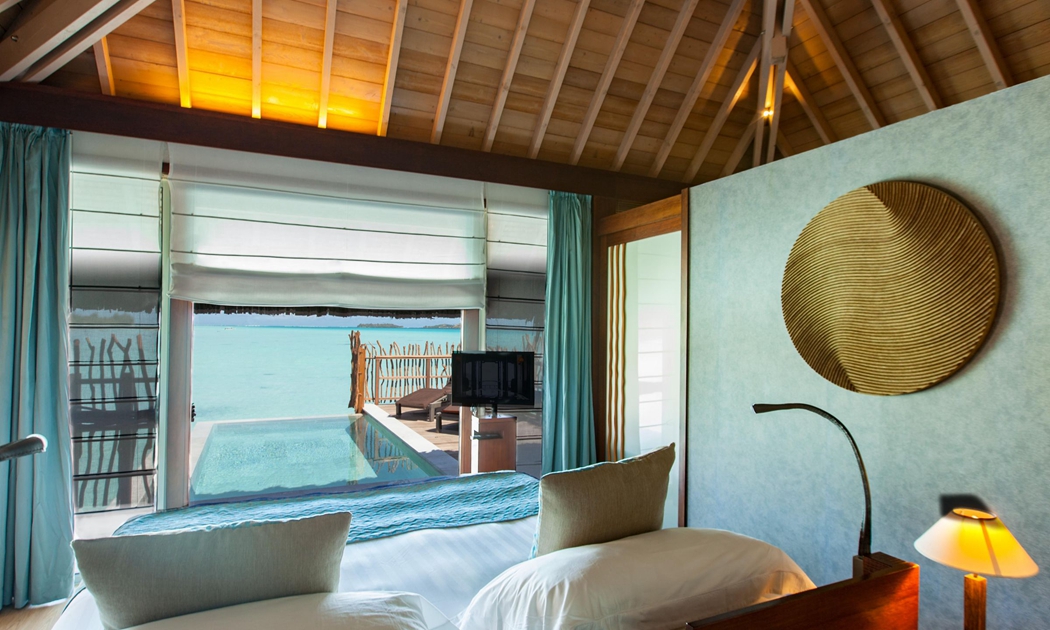 高级带泳池水上屋有着壮丽的无限视野的景色并有一个私人户外泳池,与泳池水上屋对比,无疑尊享泳池水上屋享有更加优越的地理位置。