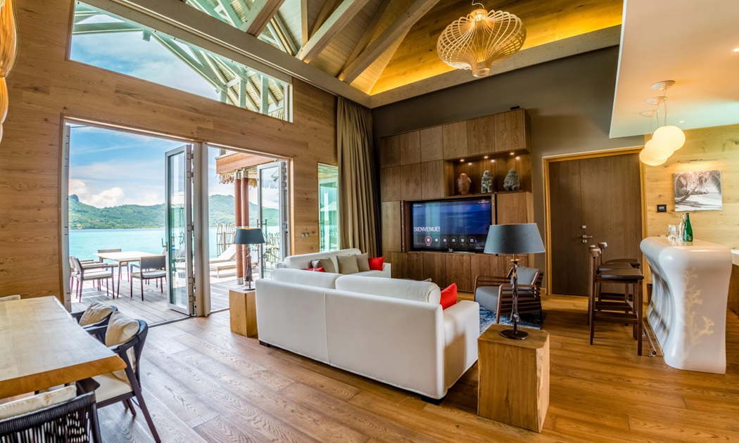这些水上屋拥有十分现代化的奢华的设施,功能时尚,现代化的装修配上传统波利尼西亚式的房间设施.