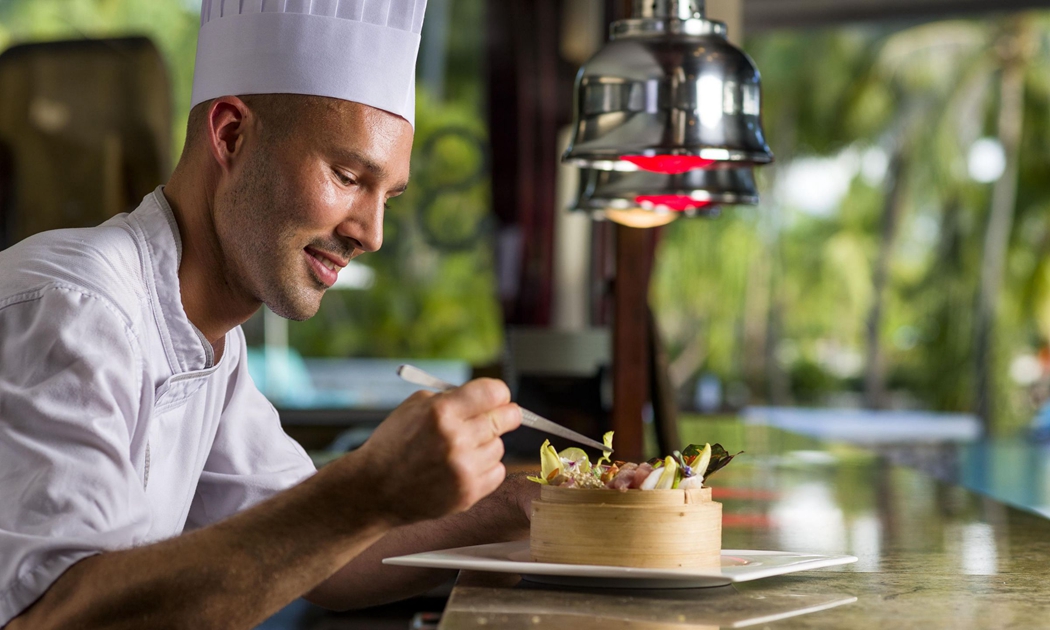 Le Reef餐厅主打热带波利尼西亚风格的美食。客人可以在轻松愉快的环境下享受精致的美食,早餐很早就有供应,晚餐主打特色菜威廉姆斯梨子和栗子配鹅肝酱、桃子果酱和梨配百里香、香煎扇贝、意大利南瓜调味饭,在露天阳台俯瞰泻湖和海滩是十分令人愉快的体验。