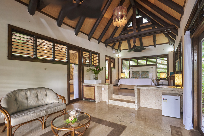 珊瑚别墅非常的美妙而独特,这里一半处于茂盛植被的包围中,另一半凌驾于水面之上。从阳台上的无边泳池向外望去,180°的全海景绝对会让你深受震撼——那将是一片广阔无涯的悬崖景观。珊瑚别墅是典型的斐济式建筑,其中蕴含着与四周环境充分融合的精妙设计。明亮优雅的室外环境配上和谐温馨的室内装饰,以及精心准备的全套Pure Fiji护理品,一切只等待住客的光临。