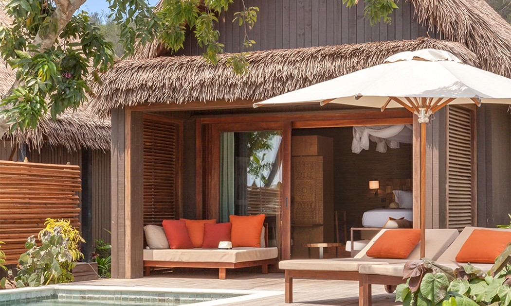 这些独立式套房是更宽敞的选择,拥有宽敞的起居区,可以关闭门。而通过起居区的双扇门进入私人甲板和游泳池,并享受热带原生花园的葱郁环境。