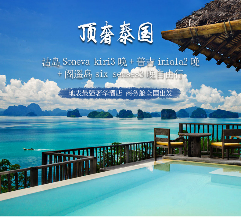 3晚普吉岛SixSensesYaoNoi海德威泳池别墅2晚InialaBeachHousePenthouse+3晚SonevaKiri湾景泳池别墅
