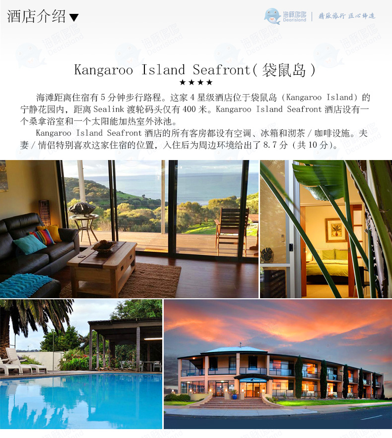 袋鼠岛两晚 4 星 Kangaroo Island Seafront 或同级 海景房;