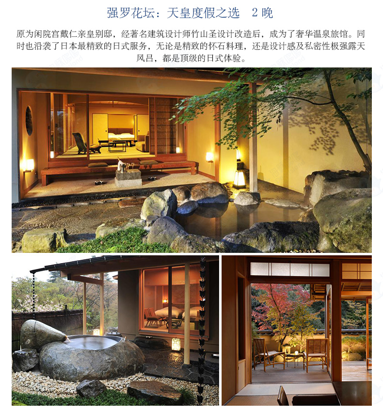 钟山苑 露天风吕客房1间1晚|强罗花坛温泉旅馆 日式私汤客房1间2晚|东京文华东方酒店 豪华客房1间2晚