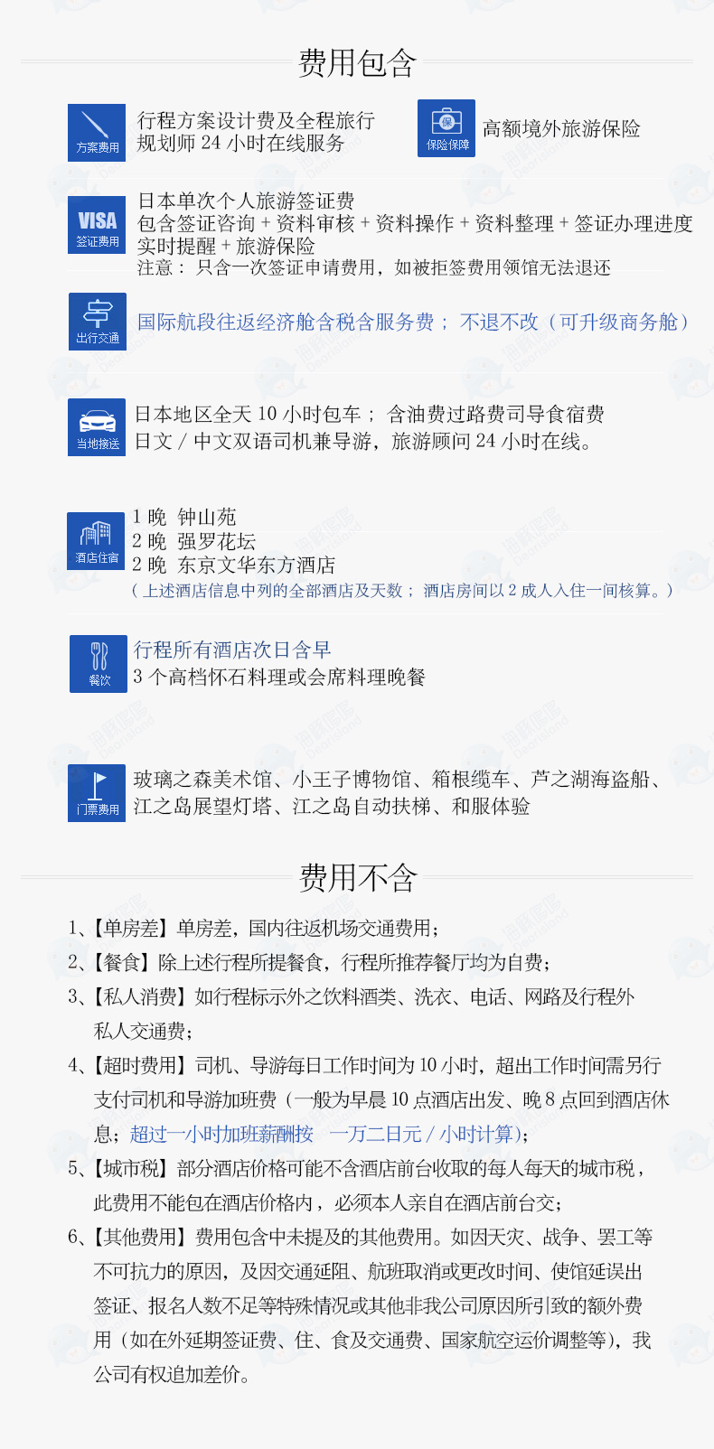 行程所有酒店次日含早,高档怀石料理或会席料理晚餐3餐