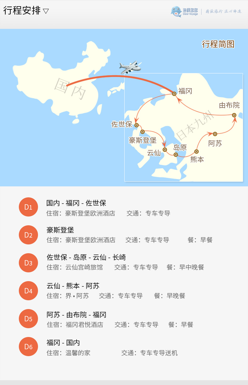 上述酒店信息中列的全部酒店及天数;酒店房间以2成人入住一间核算。豪斯登堡欧洲酒店2晚云仙宫崎旅馆1晚界•阿苏 1晚福冈君悦酒店 1晚