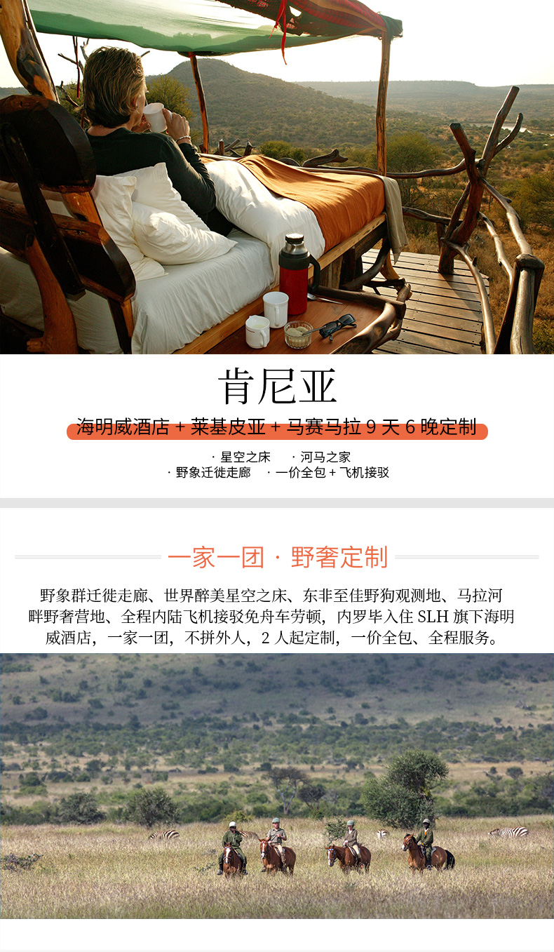 【非洲星空下入眠】肯尼亚海明威酒店+莱基皮亚+马赛马拉9天6晚定制游
