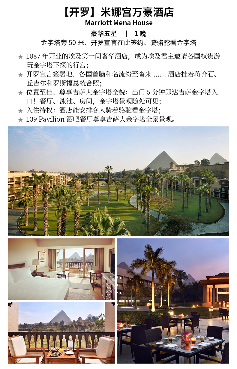 开罗Mena House五星或同级酒店住宿含早餐,1晚
